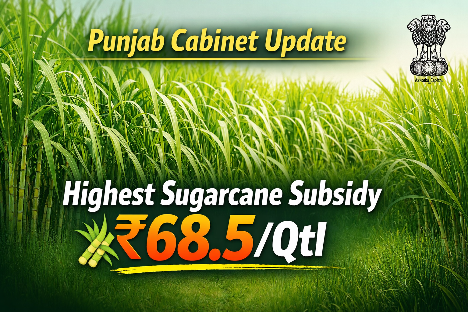 ਸਰਕਾਰ ਦੇ ਇਸ ਫੈਸਲੇ ਨਾਲ ਗੰਨਾ ਉਗਾਉਣ ਵਾਲੇ ਕਿਸਾਨਾਂ ਨੂੰ ਆਰਥਿਕ ਰਾਹਤ ਮਿਲਣ ਦੀ ਉਮੀਦ ਹੈ। ਕੈਬਨਿਟ ਮੀਟਿੰਗ ਦੌਰਾਨ ਖੇਤੀਬਾੜੀ ਨਾਲ ਸੰਬੰਧਿਤ ਮਸਲਿਆਂ ‘ਤੇ ਵਿਚਾਰ-ਵਟਾਂਦਰਾ ਕੀਤਾ ਗਿਆ ਅਤੇ ਇਹ ਫੈਸਲਾ ਲਿਆ ਗਿਆ ਕਿ ਕਿਸਾਨਾਂ ਦੀ ਆਮਦਨ ਵਿੱਚ ਸੁਧਾਰ ਲਿਆਂਦਾ ਜਾਵੇ।